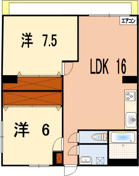 2LDK (洋 7.5・6 / LDK 16)