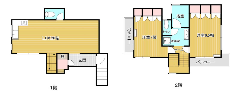 2LDK (洋 7・9.5 / LDK 20)