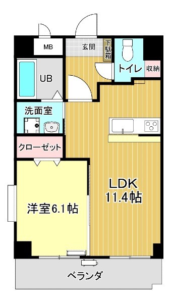 1LDK (洋 6.1 / LDK 11.4)